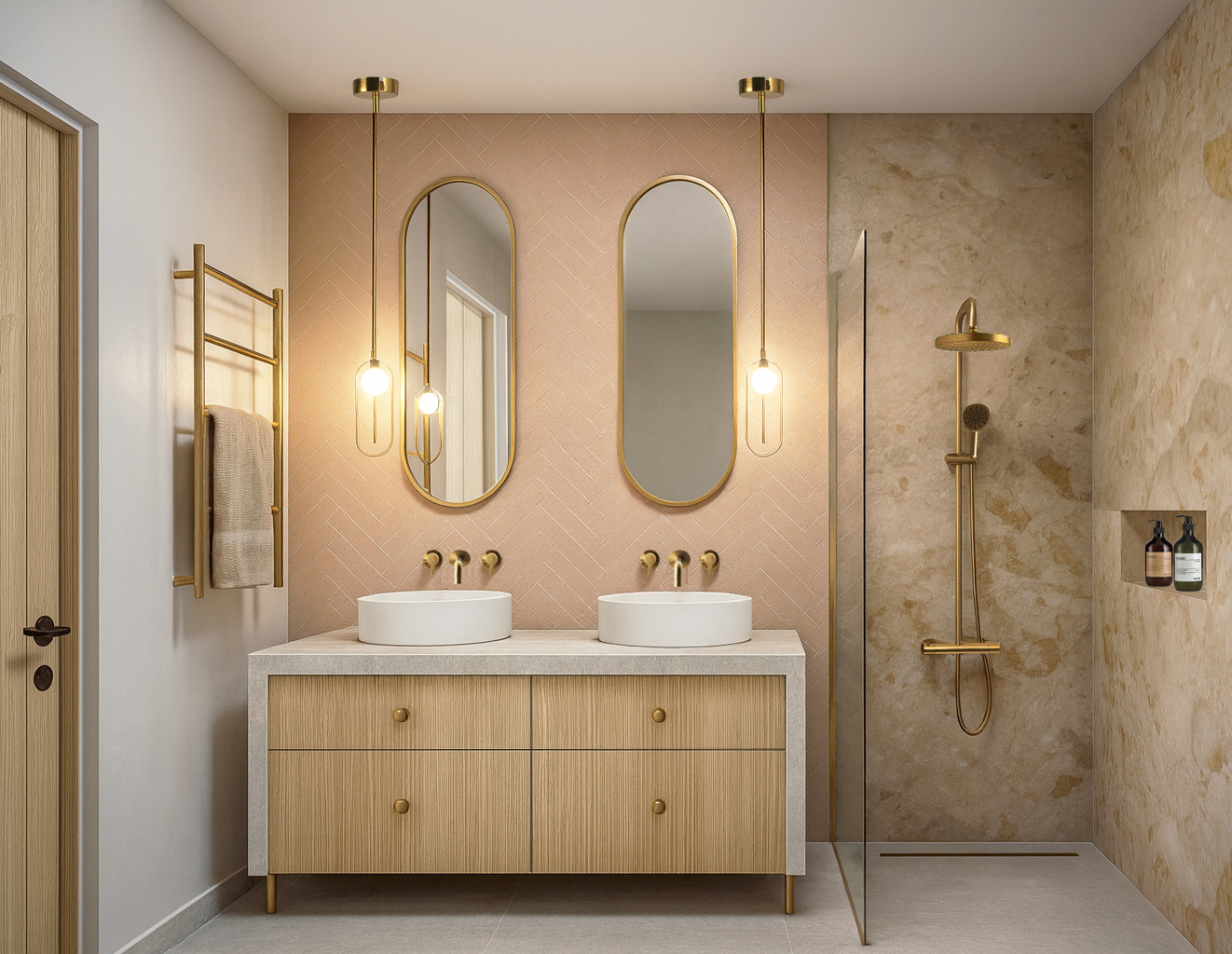 Finishing touches in the form of delicate glass vases, petite coffee tables with gilded accents, and tasteful artworks exude a refined charm. Floor lamps and pastel-hued decorative cushions infuse the space with character and elegance, completing a design narrative that marries contemporary aesthetics with an inviting, homely aura. This project stands as a testament to the artful balance of form, function, and comfort in modern interior design.